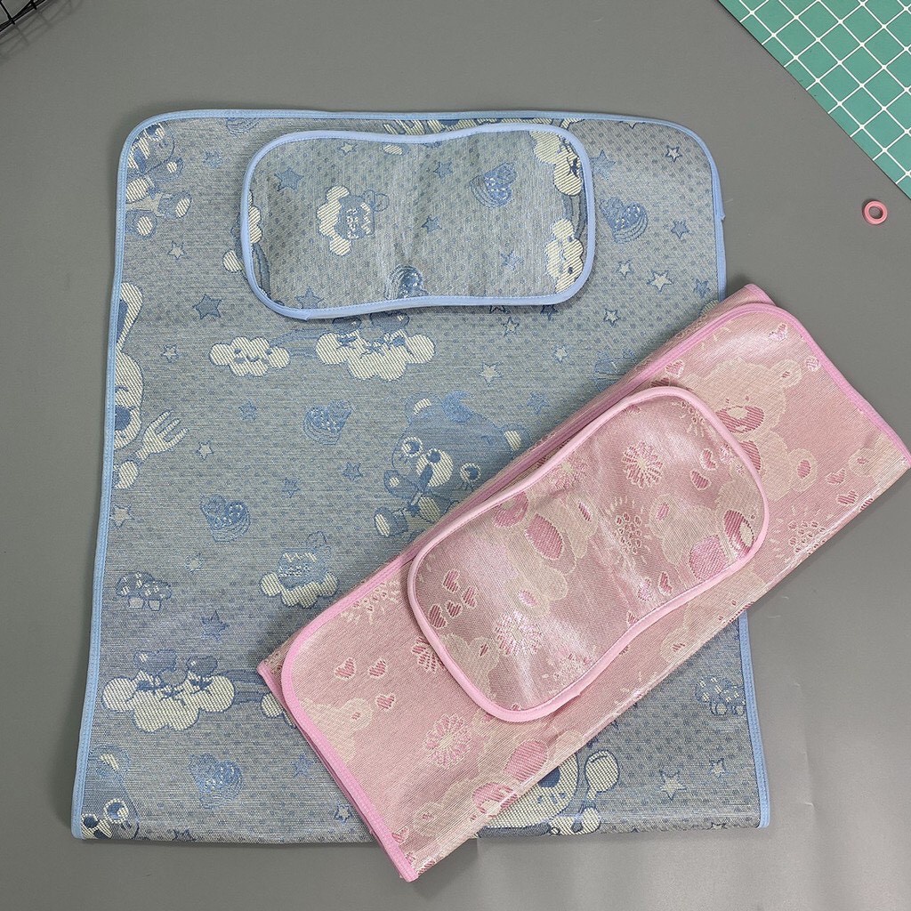 Chiếu điều hòa cho bé, Chiếu lụa Tặng kèm gối thảo dược cho bé, Kích thước 60x90cm