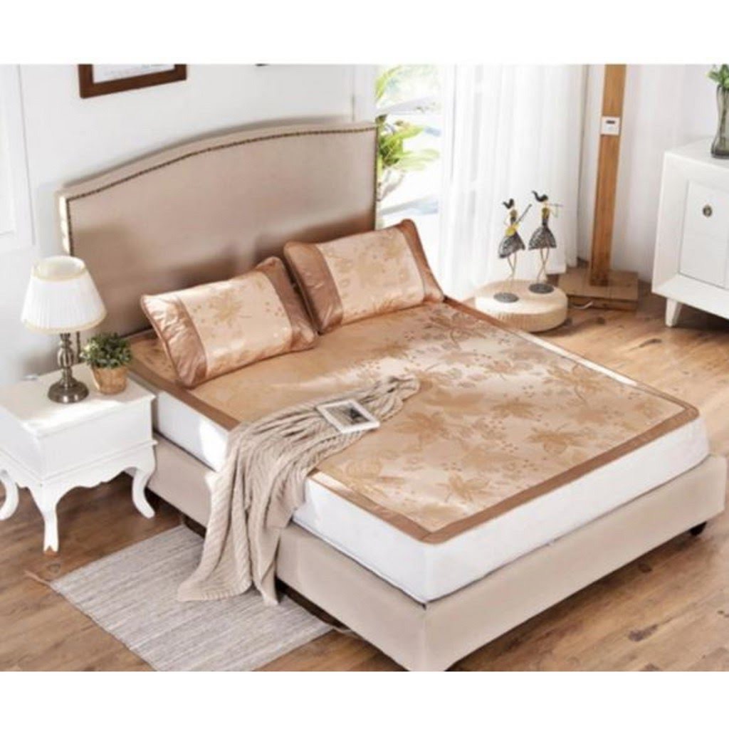 CHIẾU LỤA ĐIỀU HÒA M8x2M Màu Nâu.Tặng Kèm 2 Vỏ/Áo Gối Nằm.Mát Mẻ Không Gây Bí Lưng.Dễ Dàng Gấp Gọn.Limiti Shop