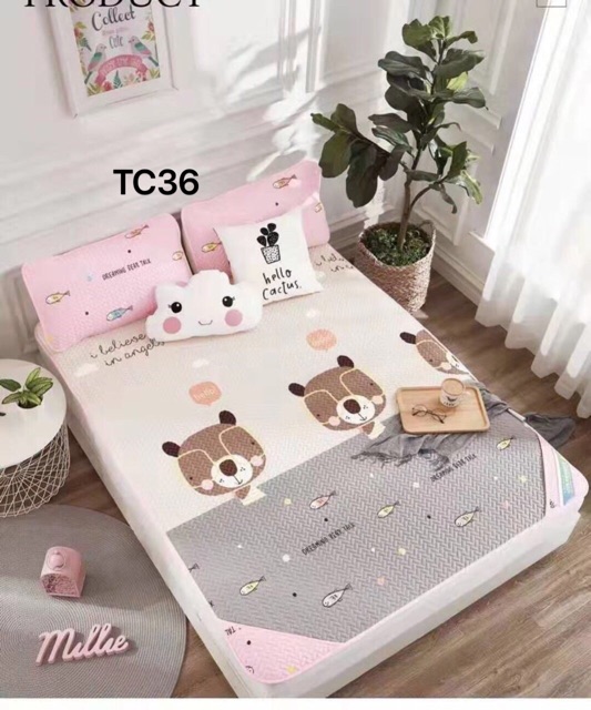 Giới thiệu Chiếu Lụa Tencel Loại 1 (size 2m*2m2) (Chiếu Điều Hoà cao cấp 2D) /kèm 2 vỏ Gối Nằm + Túi Đựng -> chát Shop báo mẫu
