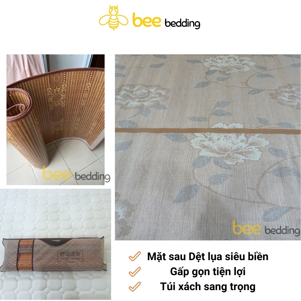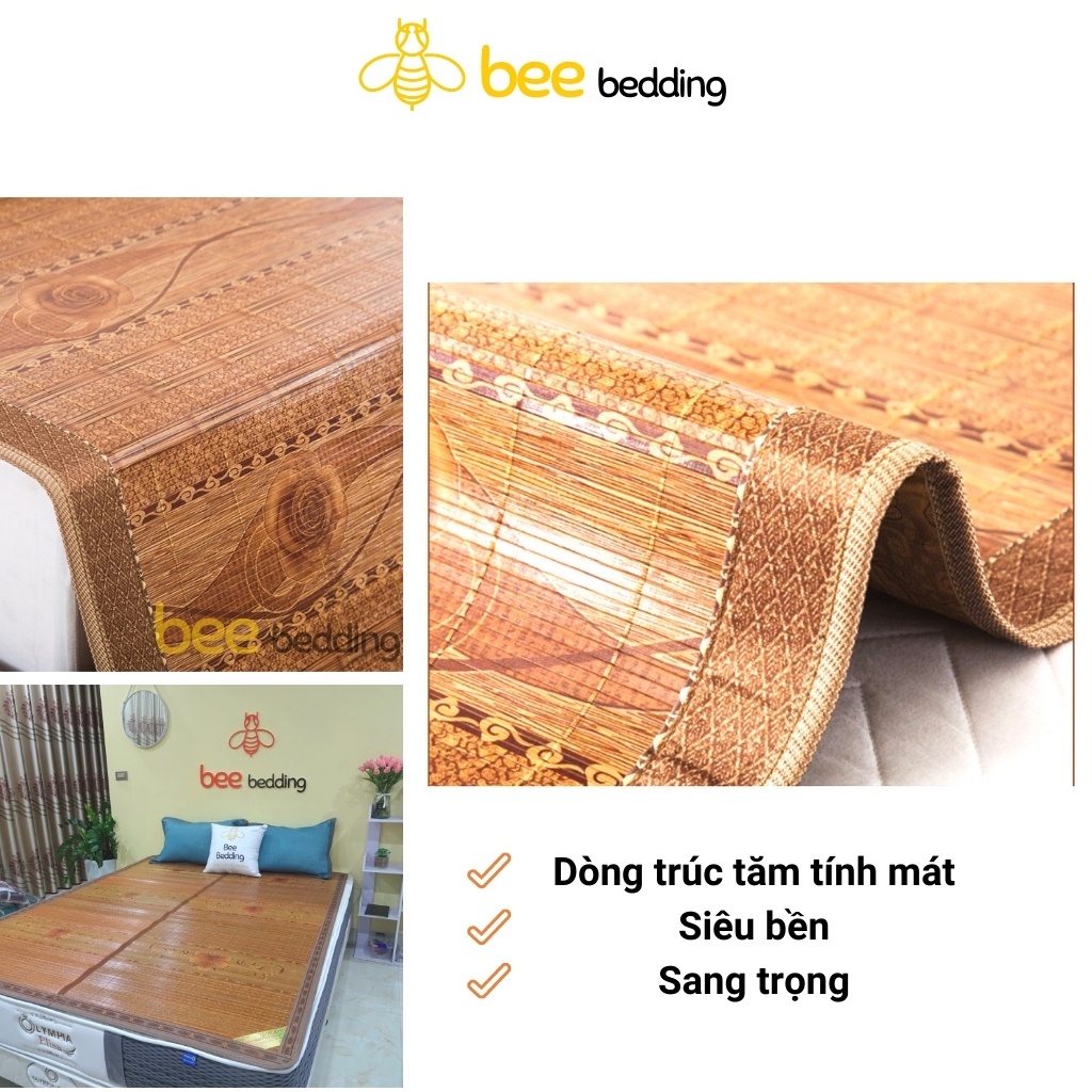 Chiếu trúc tăm vân gỗ đế lụa in hoa , hàng trúc tre cao bằng tây bắc loại đẹp [ 1m2 1m5 1m6 1m8 1m9 x 2m ]📌 GIỚI THIỆU