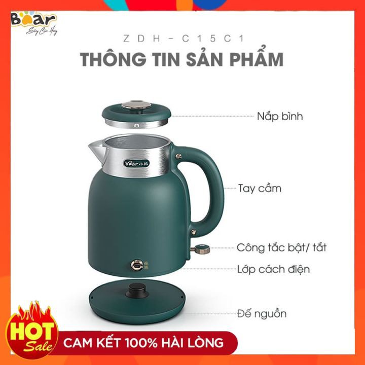 CHÍNH HÃNG Ấm Siêu Tốc 1.5 Lít Bear ZDH-C15C1_Bình Đun Nước_Siêu Tốc_Giữ ẤmChính Hãng Bảo Hành 18 Tháng