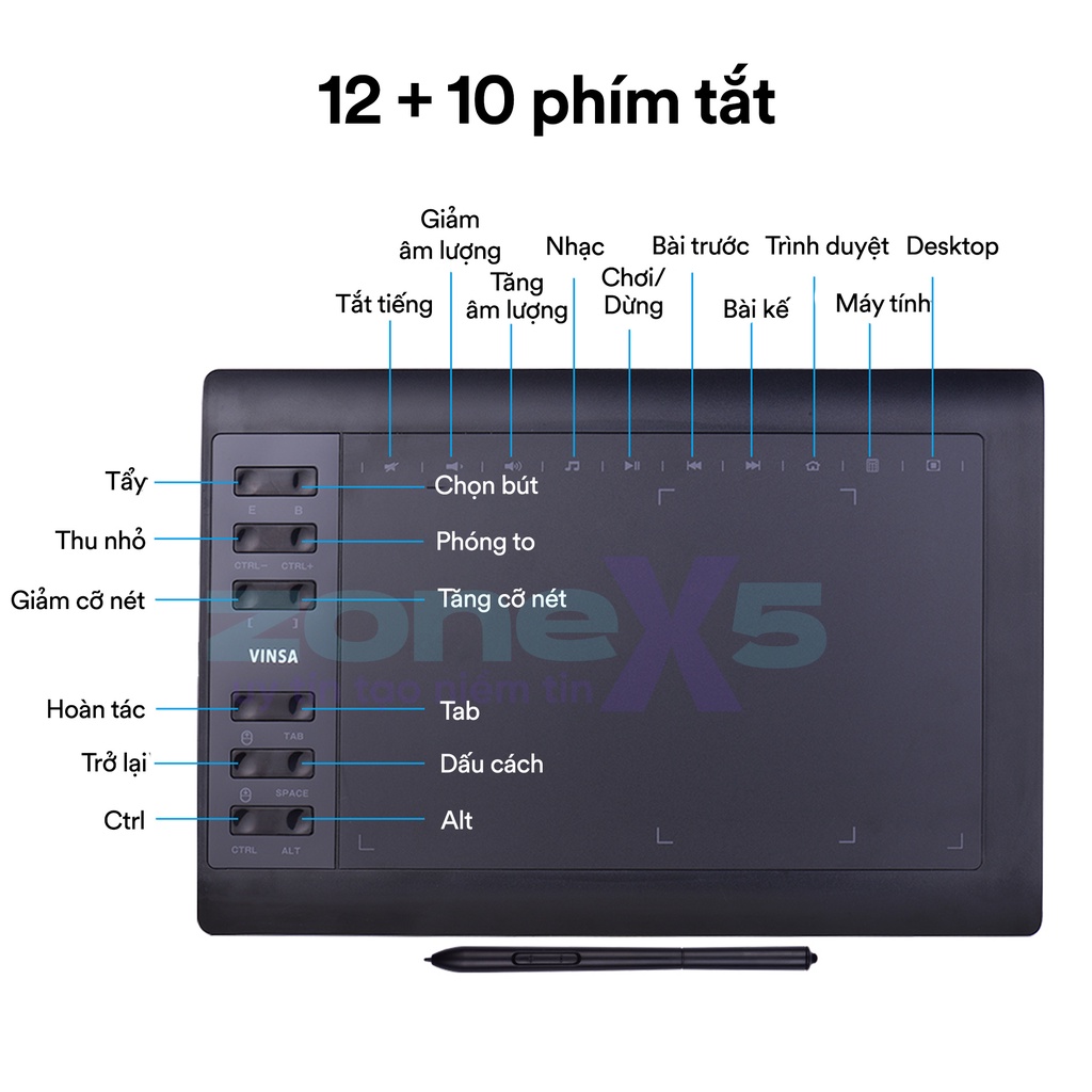 Máy tính & Laptop > Chuột & Bàn Phím > Bảng Vẽ Điện Tử || [CHÍNH HÃNG] Bảng vẽ điện tử VINSA 1060Plus - 10*6 inch, 8192 cấp độ lực, độ nhạy cao, độ trễ thấpCòn hàng