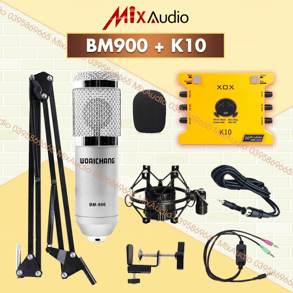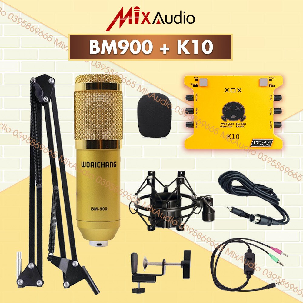 Giới thiệu [CHÍNH HÃNG] Bộ combo Thu Âm, Livestream, Karaoke SoundCard K10, MIC BM-900 và phụ kiện, Thu Âm Điện Thoại,Máy Tính,...