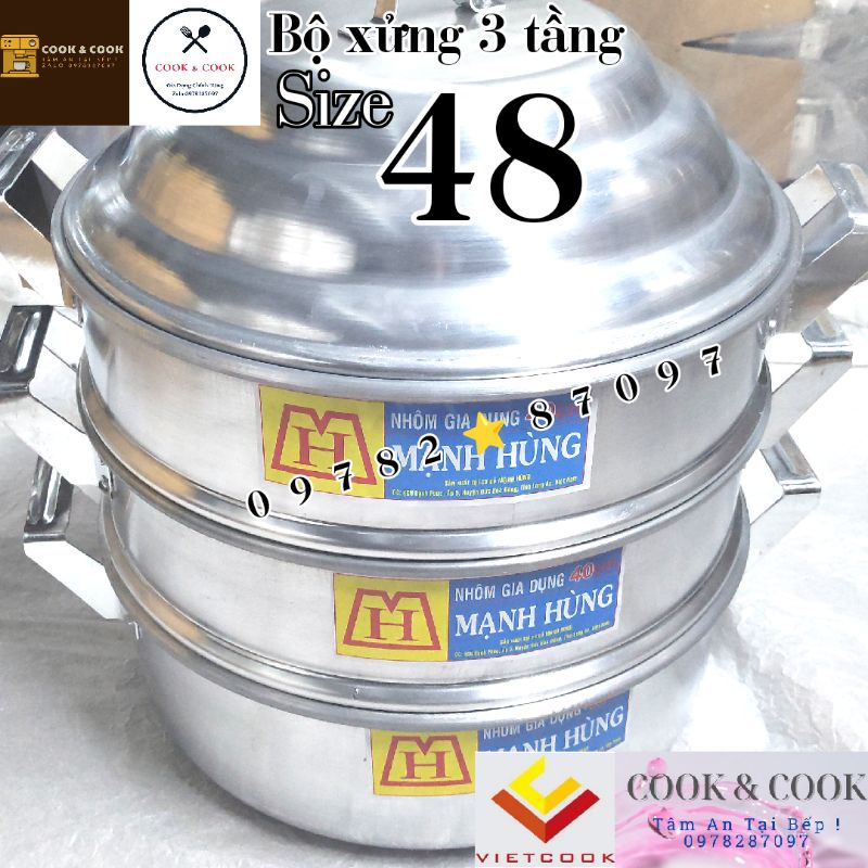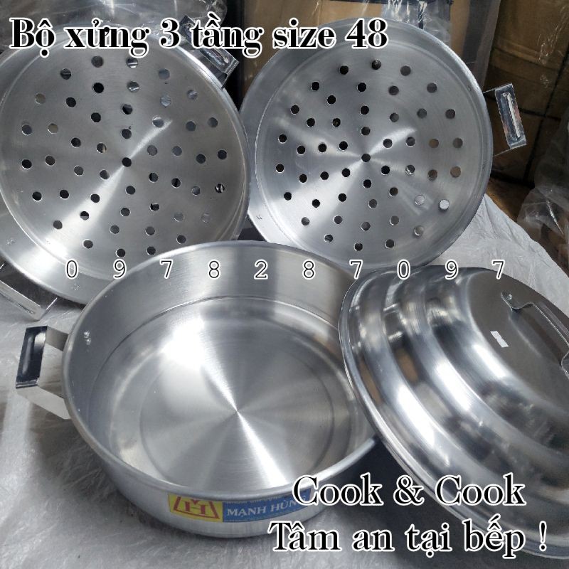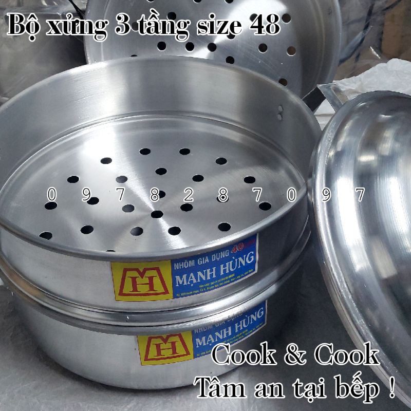 Nhà cửa & Đời sống > Dụng cụ nhà bếp > Nồi || [CHÍNH HÃNG] Bộ xửng hấp 3 tầng size 48 cm nhôm Mạnh Hùng chuyên hấp bánh bao/ hải sản/ rau củCòn hàng