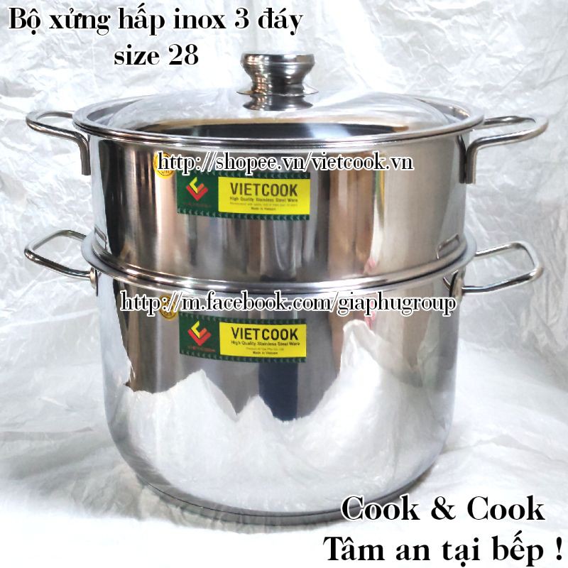 ✈️✈️Bộ xửng hấp inox 3 đáy Vietcook, đáp ứng nhu cầu nấu ăn đa dạng của gia đình nhờ có đủ các SIZE CỠ ưu việt, đem lại cảm giác ấm cúng và thân thiết bên những người thân yêu.
