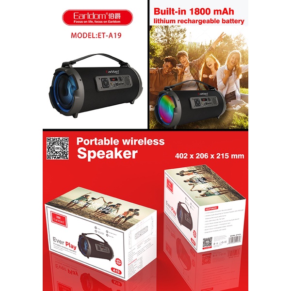 Nhằm mang đến cho người dùng những trải nghiệm tốt nhất về âm nhạc, cho dù ở nhà hay đi chơi bạn vẫn có thể giải trí cùng gia đình và người thân. Nắm được nhu cầu đó, Earldom Việt Nam đã cho ra đời sản phẩm Loa Bluetooth Earldom ET-A19