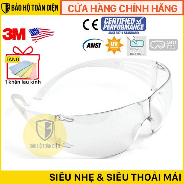 (CHÍNH HÃNG) Kính bảo hộ 3M SecureFit SF201AF chống tia UV 99.9%, chống bụi, chống va đập, siêu nhẹ {TẶNG KHĂN LAU}