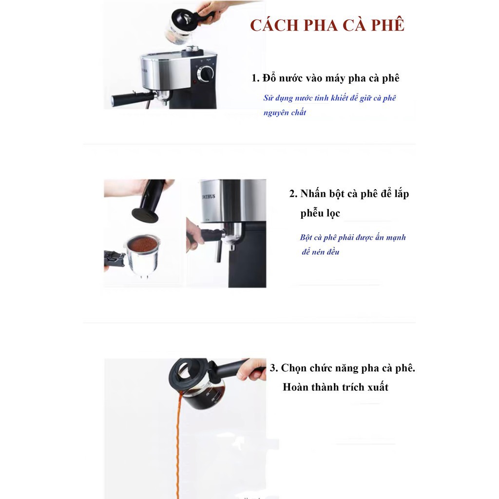 - Phụ kiện kèm theo: Tay cầm, bình chứa cà phê, muỗng cà phê, lưới lọc bằng inox siêu bền