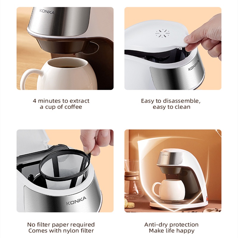 Giới thiệu [Mã ELHADEV giảm 4% đơn 300K] [CHÍNH HÃNG] Máy Pha Cafe Cà Phê Tự Động Mini Tặng Cốc Sứ Muỗng Canh KONKA KCF-CS2