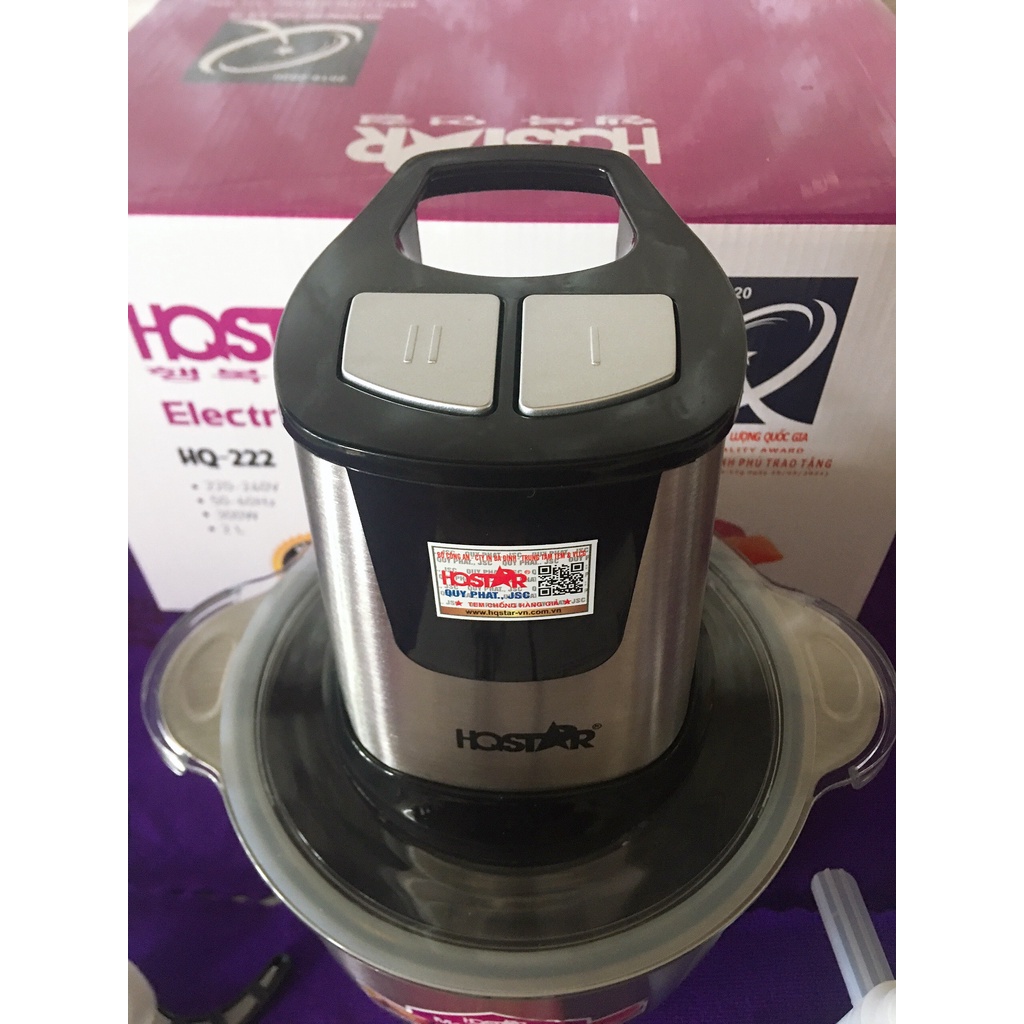 [CHÍNH HÃNG] Máy xay thịt| xay thực phẩm đa năng- cối inox 304 dày 2L HQSTAR HQ222 (Cam kết chứng nhận thương hiệu)
