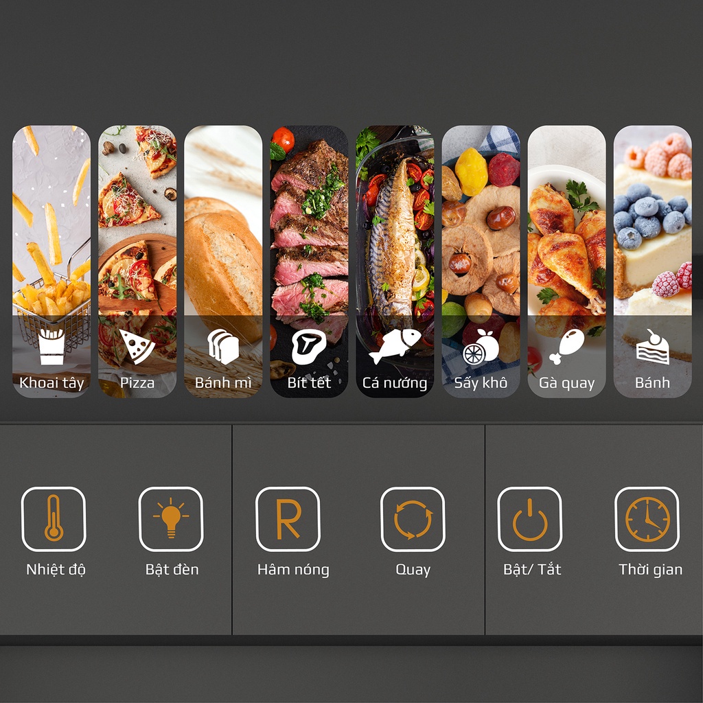 • Thay thế 9 thiết bị nhà bếp: lò nướng, lò vi sóng, bếp nướng, nướng bánh mì, nồi chiên sâu, sấy hoa quả, máy làm bỏng ngô, máy làm bít tết, máy làm sữa chua