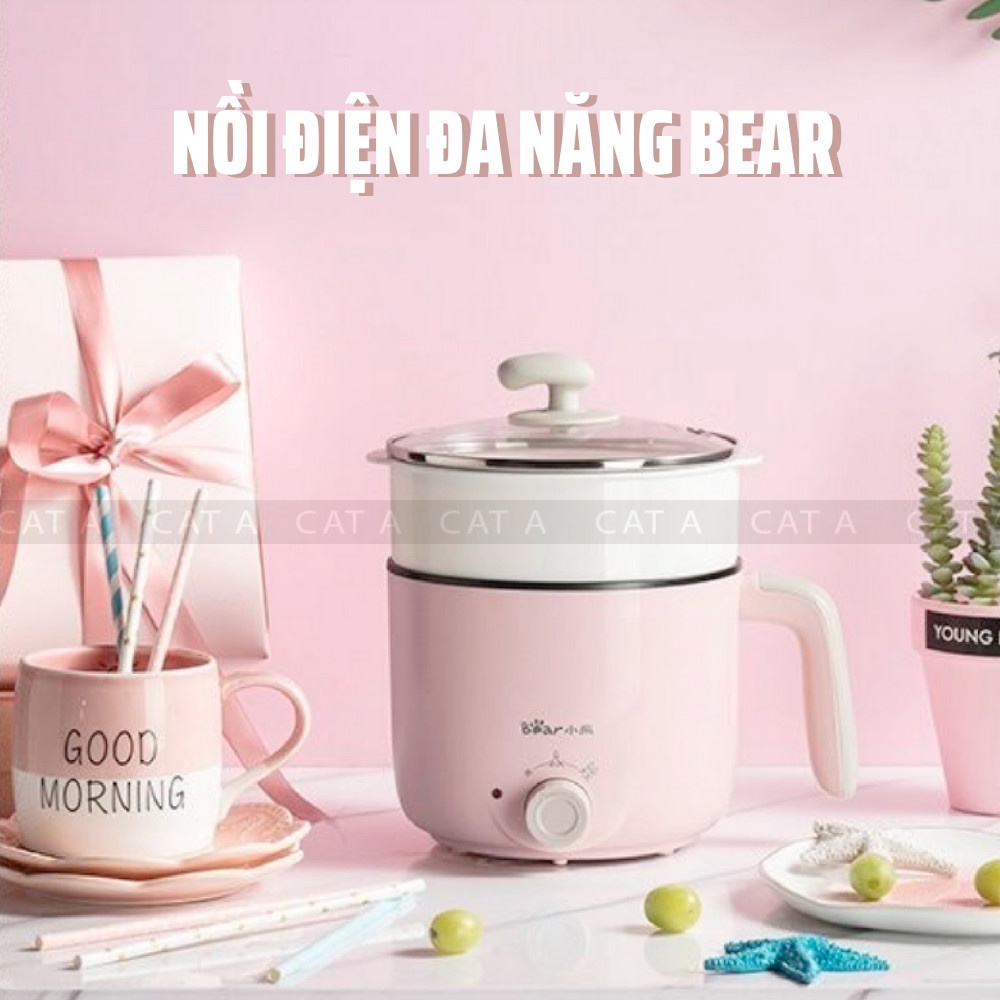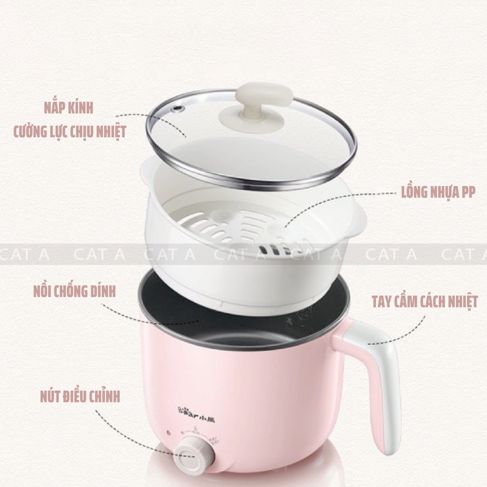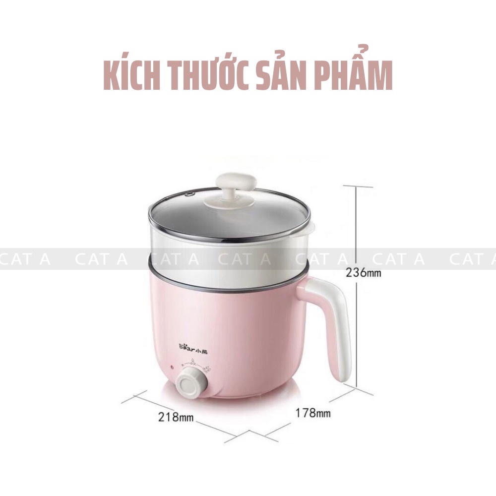 (CHÍNH HÃNG) Nồi điện mini đa năng BEAR 2 tầng chống dính dùng để hấp, hầm cháo, nấu mỳ, lẩu, chiên rán - Công suất 600W