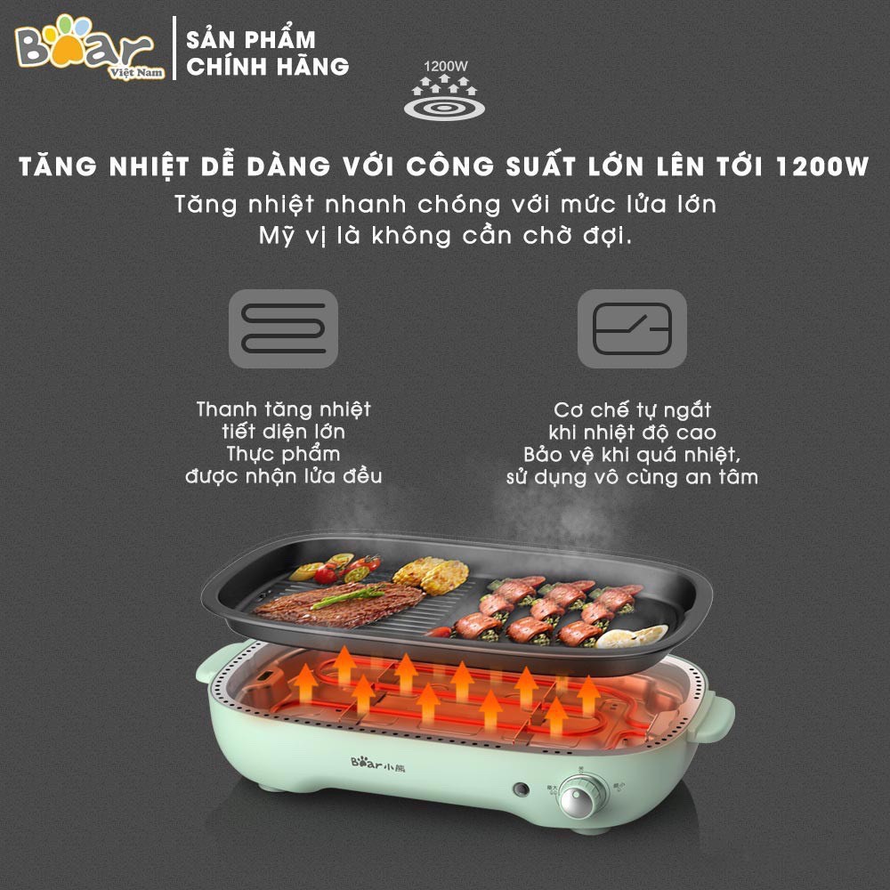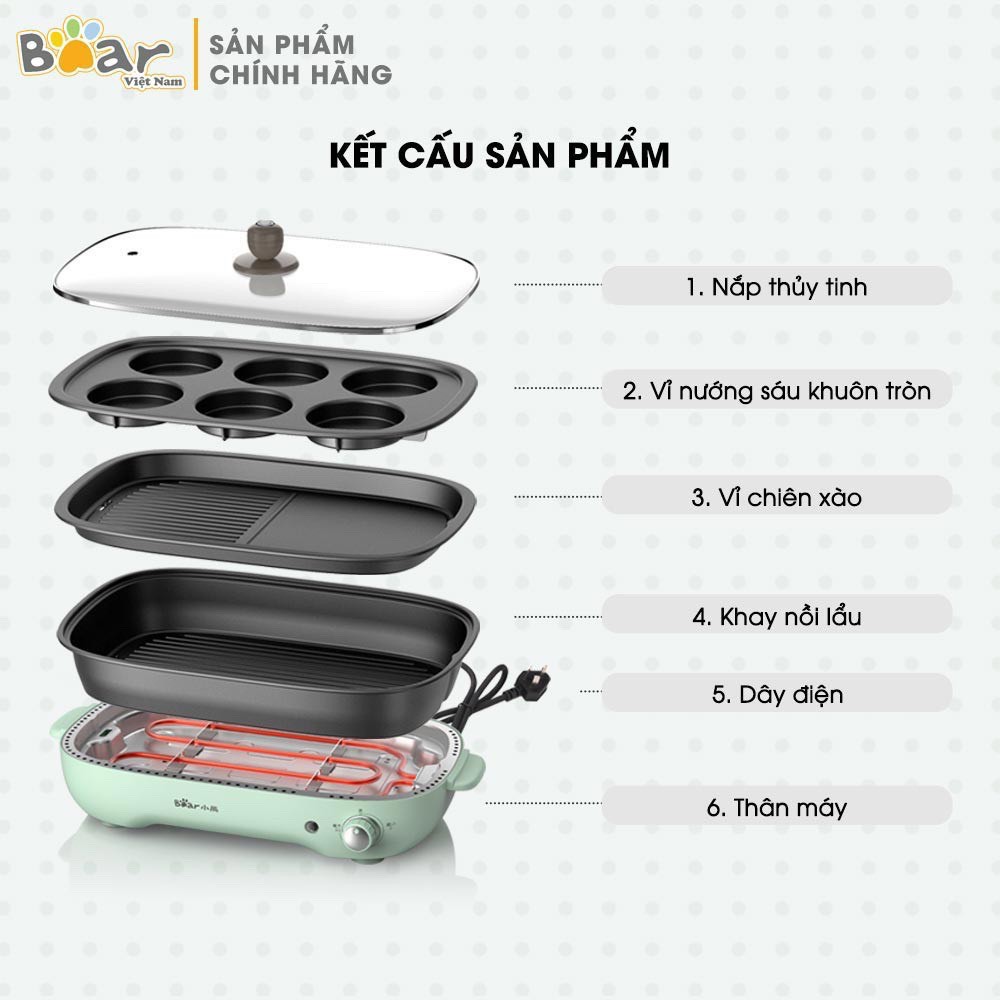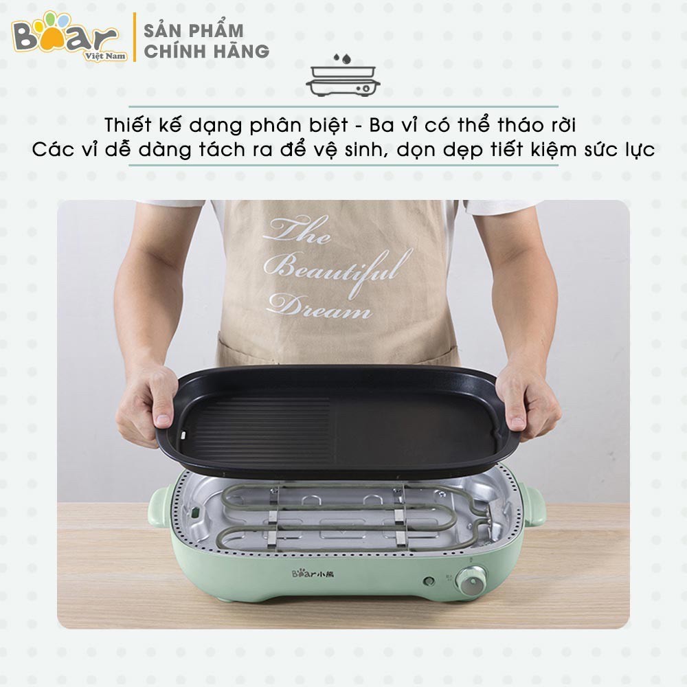 Nồi Lẩu Nướng 3 khay (lẩu, nướng, chiên xào) cao cấp Bear DHG-C40D5 (BH 12 tháng) - Hàng Chính HãngThiết kế thời trang nhỏ gọn