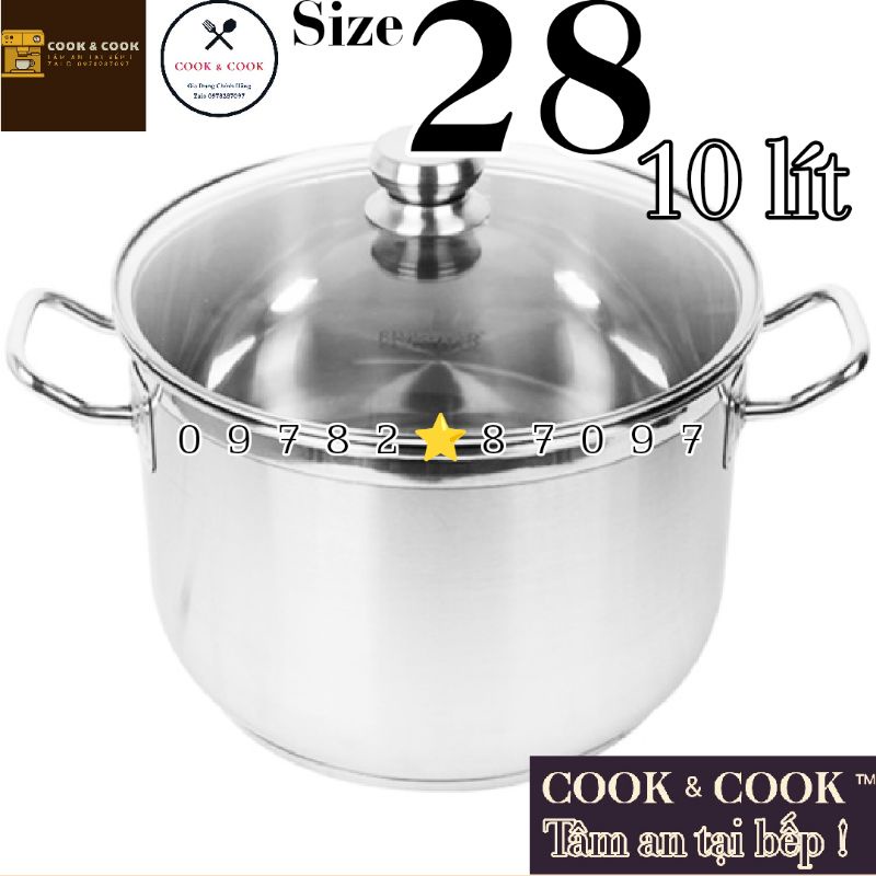 Nhà cửa & Đời sống > Dụng cụ nhà bếp > Nồi || [CHÍNH HÃNG] Nồi luộc gà inox 3 đáy nắp kính size 28 cm VIETCOOK dung tích 10 LÍT sử dụng trên bếp từCòn hàng