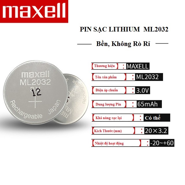 Giới thiệu [CHÍNH HÃNG] Pin Sạc Maxell2032 Lithium 3V Maxell ML2032, Pin Cúc Áo Sạc ML2032 3V