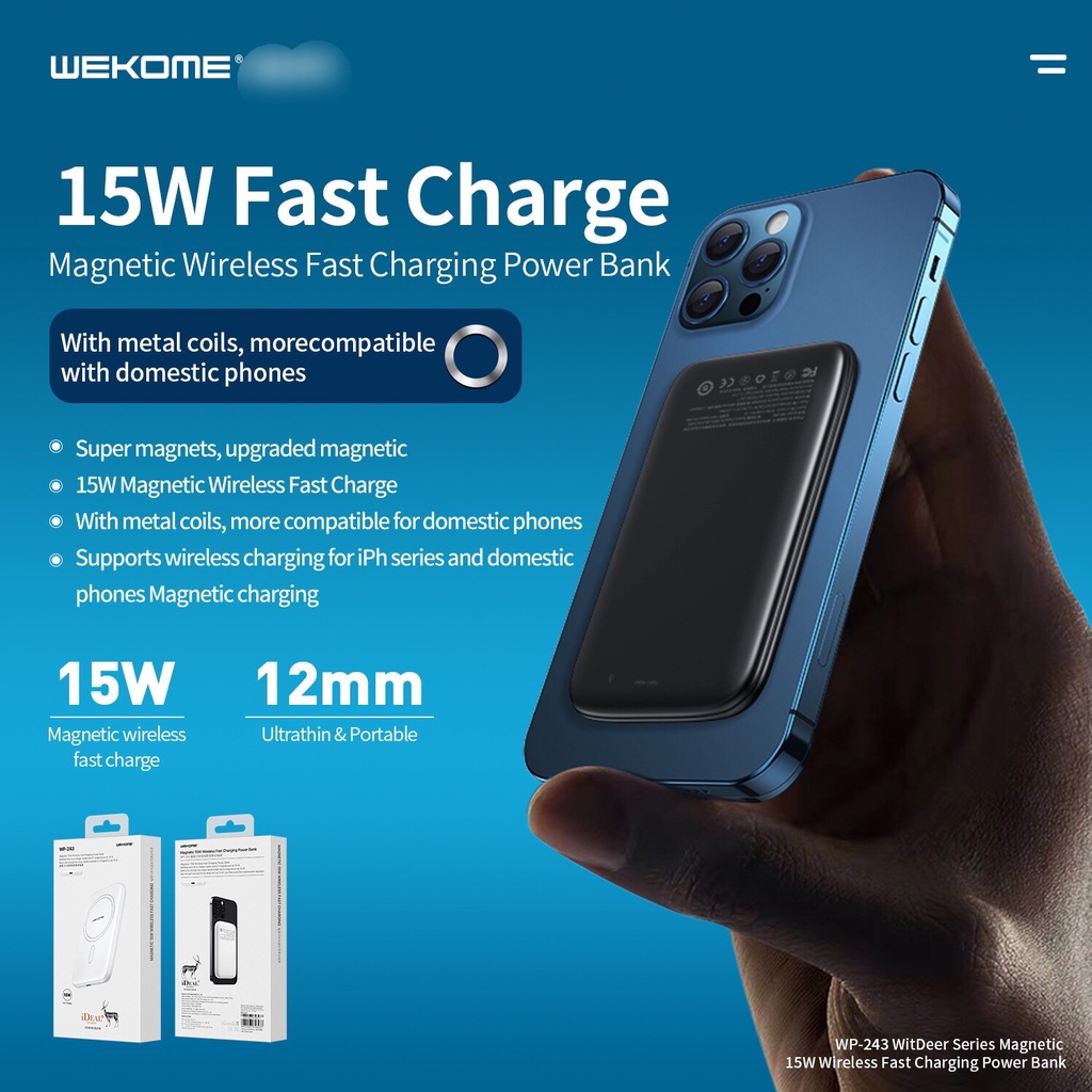 CHÍNH HÃNG sạc dự phòng magsafe Kiêm Sạc Dự Phòng 5W 15W 20w Hỗ Trợ nhiều Thiết Bị wk wp 243 500mah