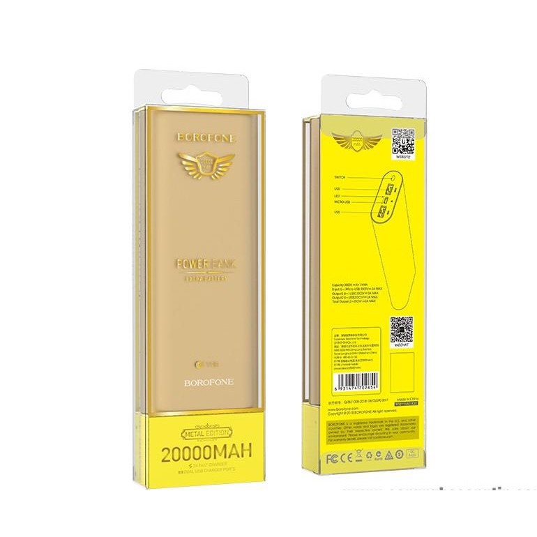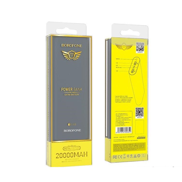 BOROFONE - Pin Sạc Dự Phòng BT19B - Dung Lượng 20000mAh, Có Đèn Led là một sản phẩm của BOROFONE đến từ Hongkong, đây là thương hiệu chuyên sản xuất các phụ kiện dành cho điện thoại với các mức giá ở tầm trung nên được rất nhiều lựa chọn và tin dùng.