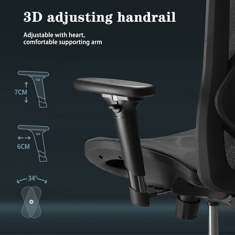 ✔️ Tay ghế 3D ốp PU mềm có tăng chỉnh được độ cao - thấp, trước - sau, xoay góc 36 độ