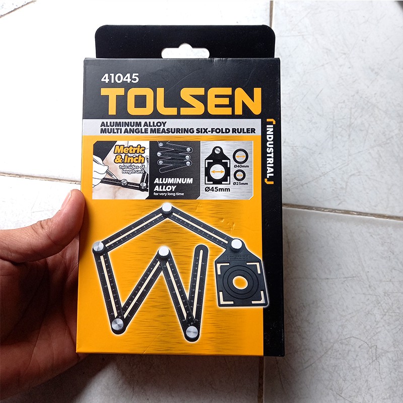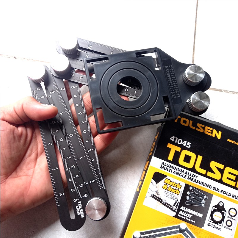 Mô Tả Sản PhẩmThước đo 6 góc gấp tolsen 41045, có lỗ định vị đa năng được sử dụng rất nhiều trong lĩnh vực xây dựng, chế tác nghệ thuật cần độ chính xác trên đá, gạch, gỗ, thuỷ tinh, giúp người thợ định vị chính xác các điểm cần cắt bỏ, đục lỗ phù hợp với các góc cạnh khác nhau một cách chính xác nhất. Đây là bộ thước chuyên dụng được sản xuất để phục vụ cho lĩnh vực xây dựng hoặc làm các dự án bạn tự làm tại nhà, giải quyết khó khăn khi người thợ xây dựng phải định vị các lỗ cần khoan trên gạch hoặc trên tường hoặc kính, ghỗ. Xác định diện tích gạch cần cắt ốp vào các vị trí góc sàn nhà hay góc tường.