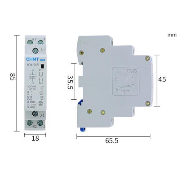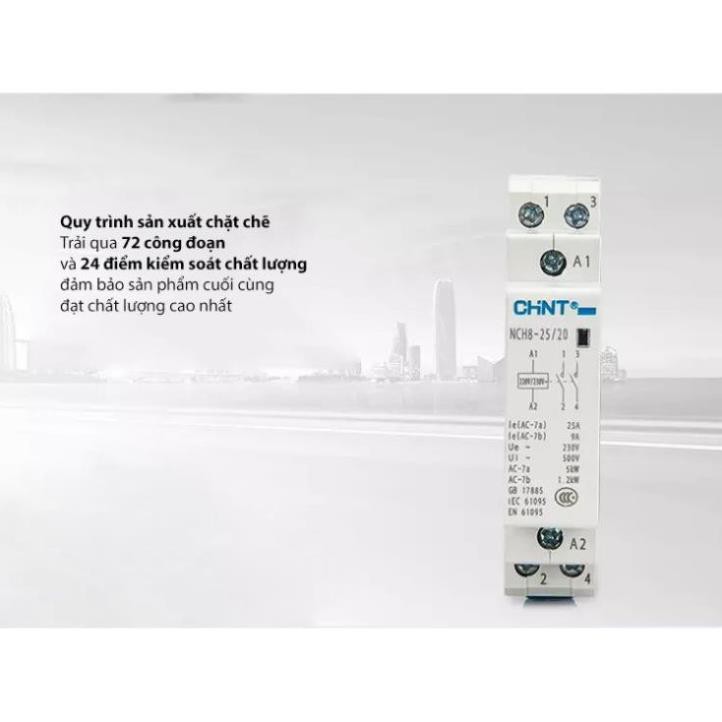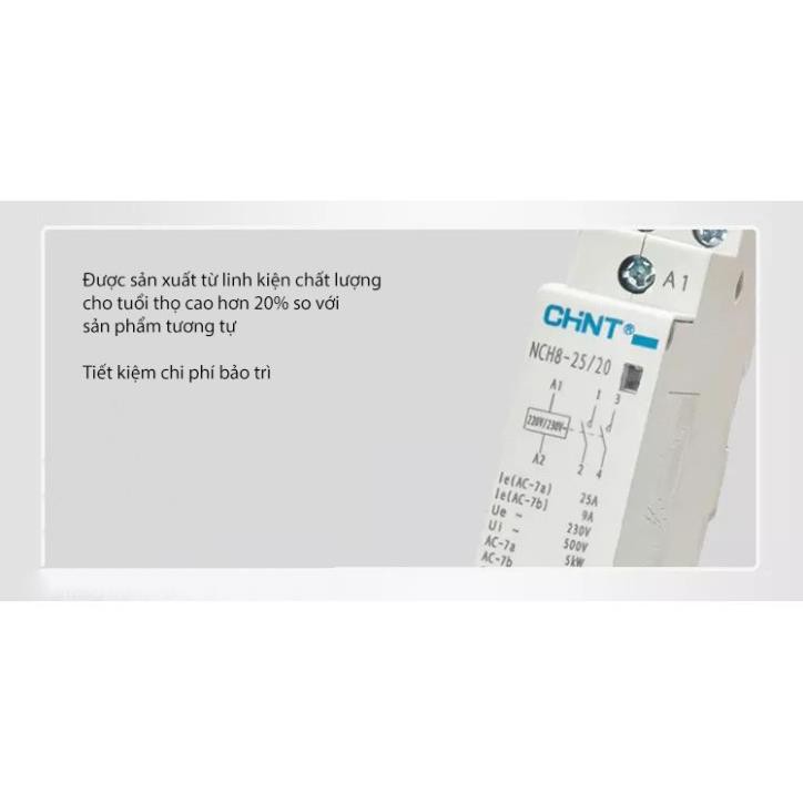 Khởi Động Từ Contactor Đóng Cắt Điện 25A CHINT NCH8-25 là thiết bị đóng cắt trung gian chống quá tải cho tất cả các loại công tắc và ổ cắm thông minh.* Đặc điểm :
