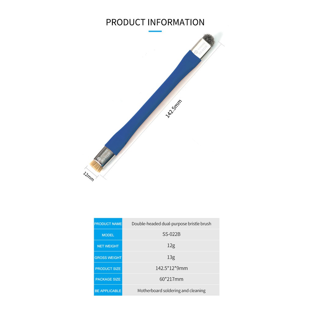 Chổi 2 đầu SS-022B thân bọc nhôm1 đầu chổi sợi lông để vệ sinh mỡ hàn, nhựa thông khi sửa chữa hoặc các main bị oxy hóa do ẩm mốc, bị dính nước lâu ngày