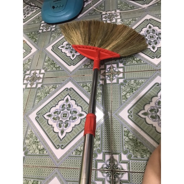 - Chổi cỏ với cán chổi dài bằng nhựa gắn kết đầu quét chắc chắn, có độ dài tương đối giúp người dùng dễ dàng cầm nắm và quét sạch rác bẩn trong ngóc ngách, gầm bàn, gầm ghế.