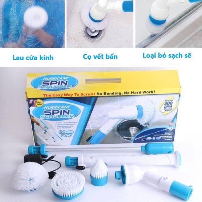 Chổi điện đa năng 3 đầu Spin 300RPM Máy Chà, rửa Vết Bẩn vệ sinh-nhà tắm Phòng bếp Thông Minh 360,Tiện lợi