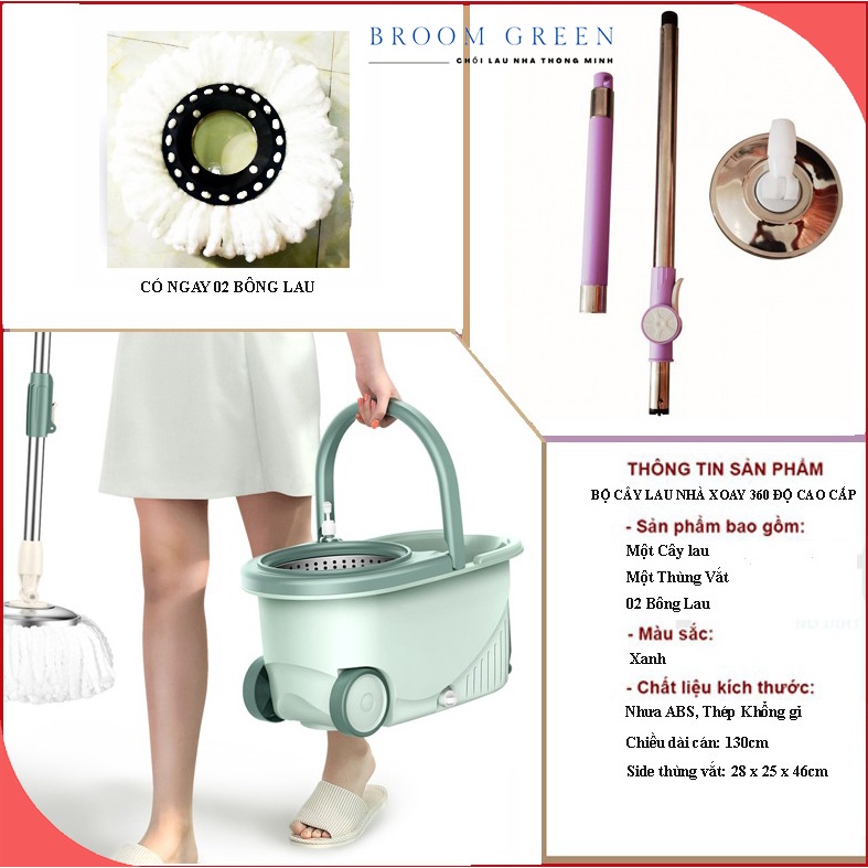 Nhà cửa & Đời sống > Dụng cụ chăm sóc nhà cửa > Cây lau nhà || Bộ Chổi Lau Nhà Xoay 360 Độ Cao Cấp, Ổ Vắt Kep Phân Tách, Bánh Xe To, Cán và Mâm Inox Chắc Chắn - Broom Green PR05Còn hàng