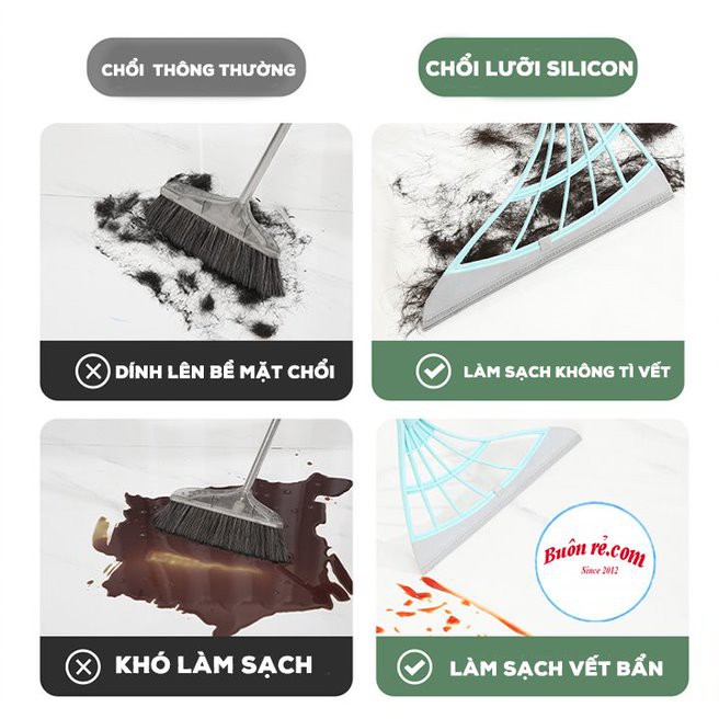 Chắc hẳn chị em nội trợ nào cũng đau đầu vì khi dọn nhà tắm , sàn nhà khi dính nước quét bằng chổi thường không thể hết được nước trên sàn nhà , hay bị dính tóc lên chổi mà vẫn không sạch..Chổi quét nhà silicone đa năng sẽ giúp cho việc quét dọn nhà cửa của bạn trở nên thật đơn giản, nhanh chóng, giúp nhà bạn luôn sạch sẽ.Chổi quét nhà đa năng thông minh có khả năng quét nước quét rác quét tóc lưỡi chổi được làm silicon Chổi quét thần kỳ