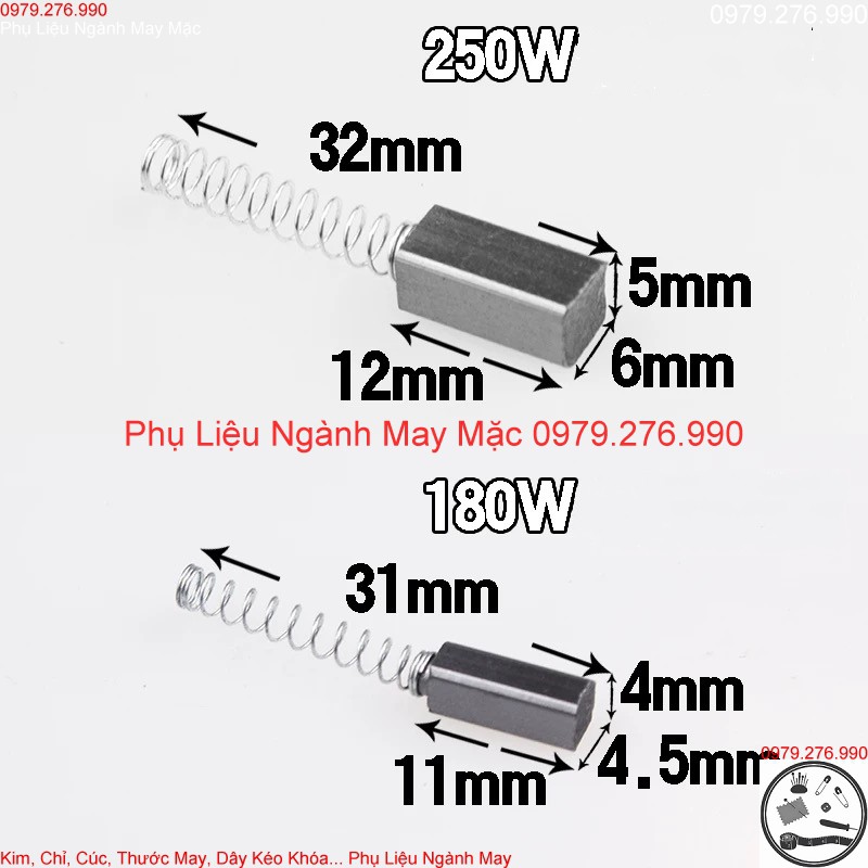 chổi than nhỏ: sử dụng cho củ mô tơ 180W (thường là mô tơ chạy thẳng của máy may con bướm cổ điển hoặc mô tơ của máy vắt sổ vàng chanh)