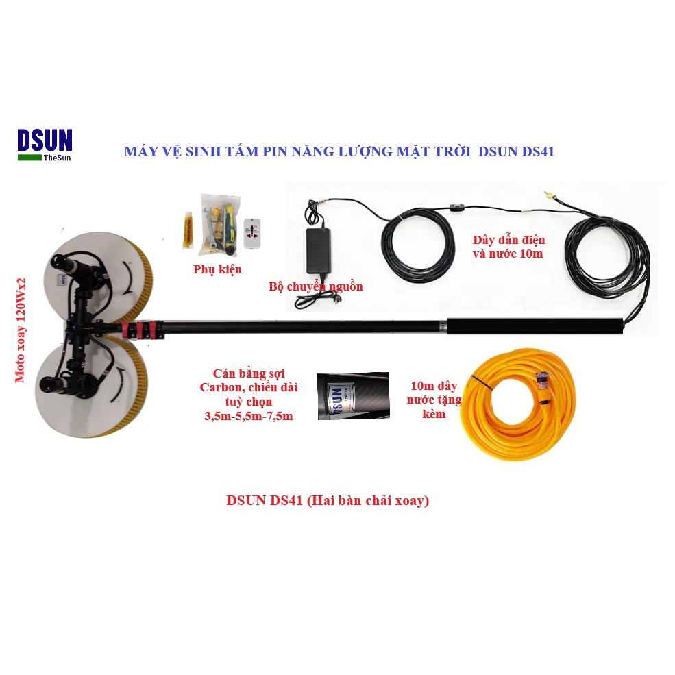 Nhà cửa & Đời sống > Dụng cụ chăm sóc nhà cửa > Bàn chải vệ sinh || Chổi vệ sinh tấm pin năng lượng mặt trời DSUN DS31, moto1 chổi xoay, dùng nguồn điện, có sẵn máy bơm, BH 12 thángCòn hàng