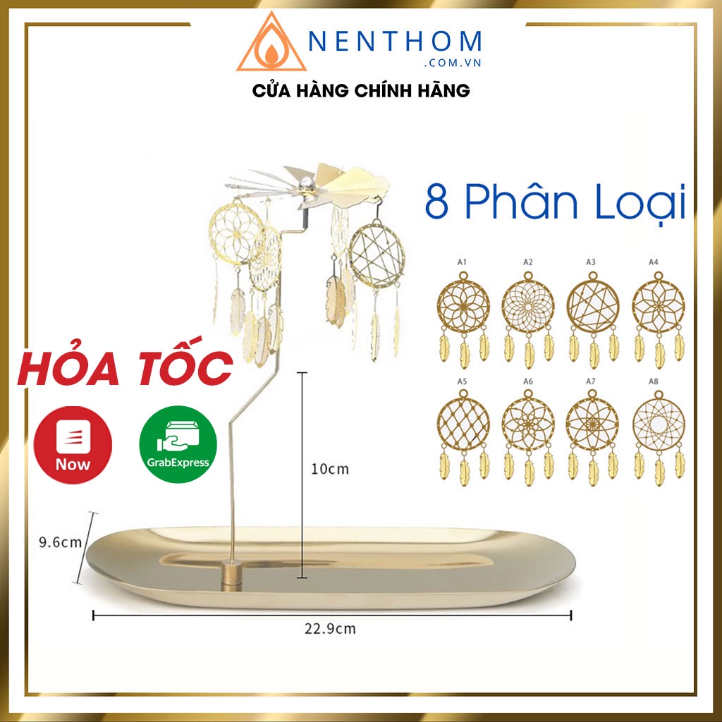 Giới thiệu Bộ Chong Chóng Nến Thơm Charm Dreamcatcher Kèm Khay Đựng, Phụ Kiện Xoay Khi Đốt Nến - A18