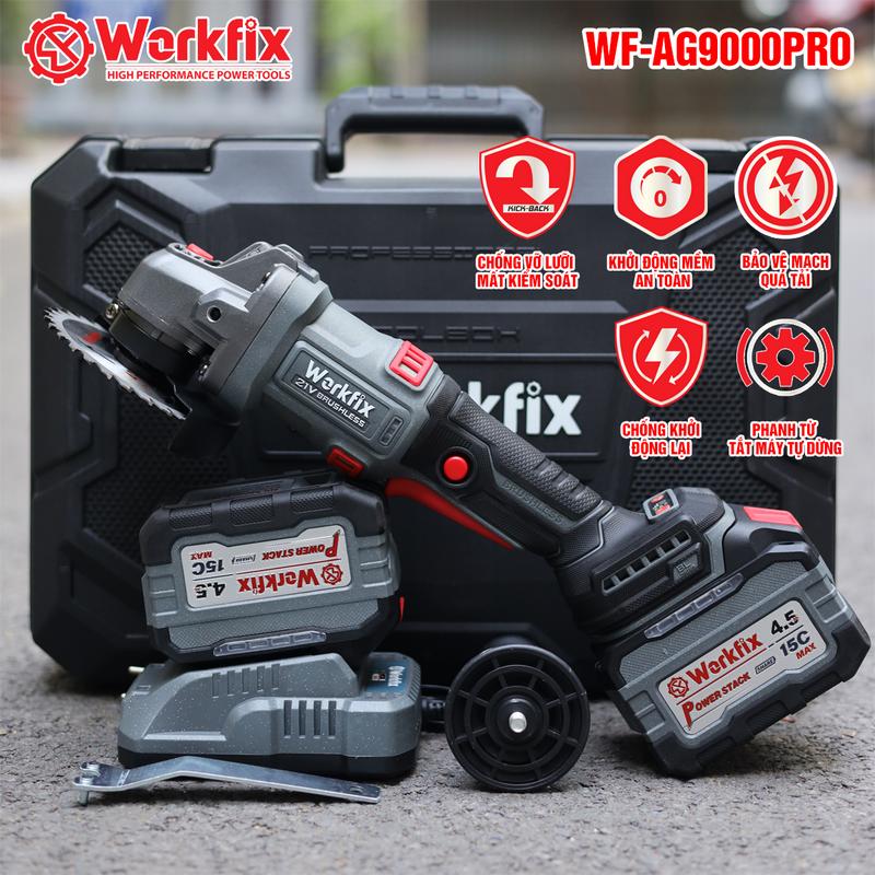 Máy Mài 100mm Dùng Pin Workfix WF-AG9000PRO - Công Tắc Bóp [Chống Lật Cổ Tay] - Brushless Motor - 2 Pin 15 Cell 21V/4.5Ah, 15C - Bảo Hành Chính Hãg 6 Tháng