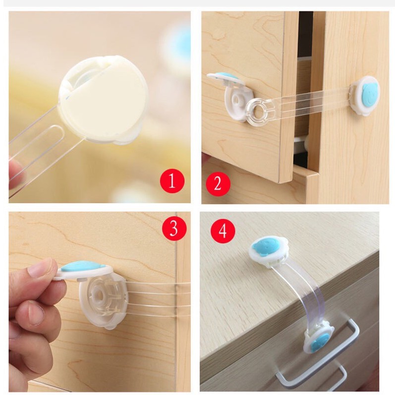 Nỗi khổ của các bà mẹ khi có con trẻ trong nhà, khoá tủ an toàn cho bé tránh kẹt tay gây thương tích khi các bé tiếp xúc với những cánh cửa tủ, ngăn kéo...là sản phẩm hữu dụng trong gia đìnhĐược thiết kế theo hình thức mở và đóng nắp chỉ người lớn mới có thể mở, giúp bạn cố định trên các ngăn kéo của tủ, cửa ra vào, để tránh những em bé nghịch ngợm gây kẹt tay, thậm chí nguy hiểm. Khi không sử dụng, bạn có thể tháo chốt dễ dàng mà không cần dùng máy khoan, hoặc đóng đinh trên cửa, giống như khóa thông thường.