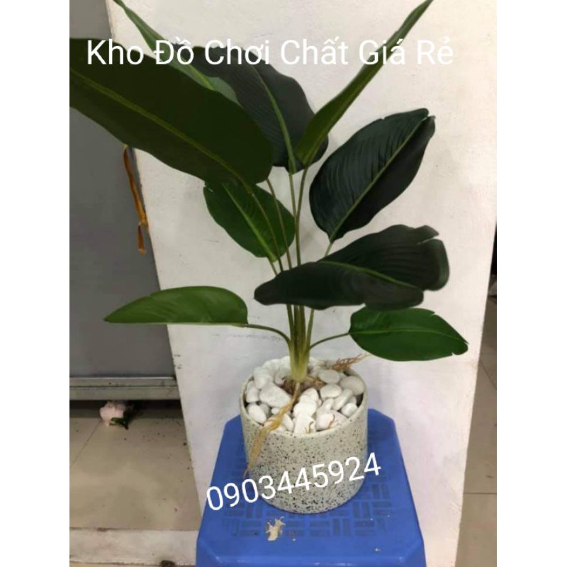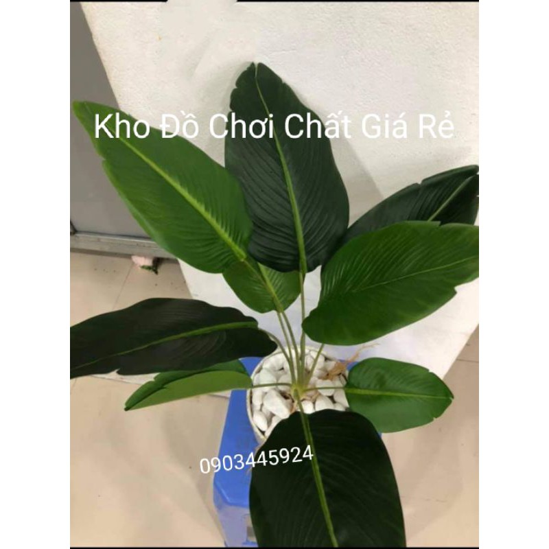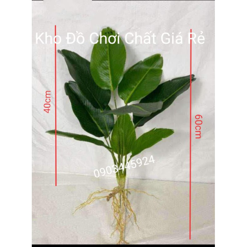 Chi Tiết Sản Phẩm:* Cây chuối cảnh giả có 9 lá cao 40cm (tính từ gốc đến ngọn) và cao 60 cm (tính từ rễ đến ngọn)