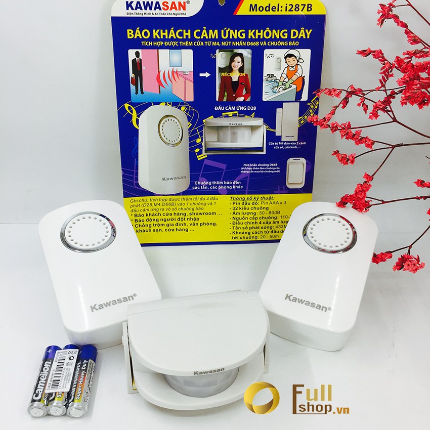 Mô tả Chuông cảm ứng báo khách, báo động không dây 1 đầu dò cảm ứng 2 chuông (2 vị trí) Kawa I287B-B68BGiới thiệu