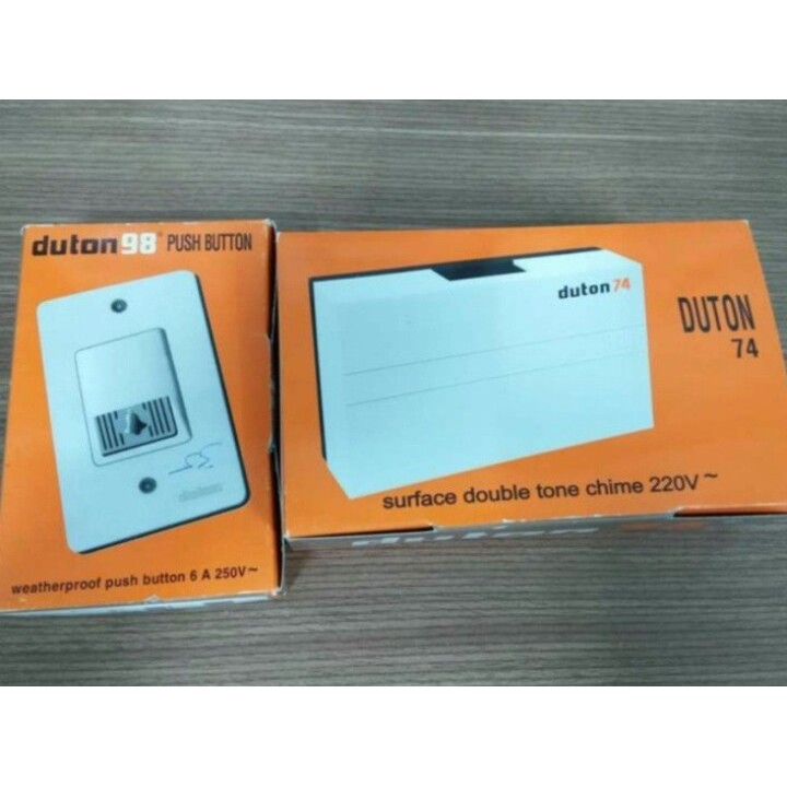 Một bộ sản phẩm chuông cửa có dây duton tl74 gồm có hộp chuông báo và một nút nhất.Chuông báo chỉ phát ra 1 kiểu chuông duy nhất (thông dụng nhất là tiếng ding doong).Nút nhấn lắp ngoài trời (có ren chống nước mưa).