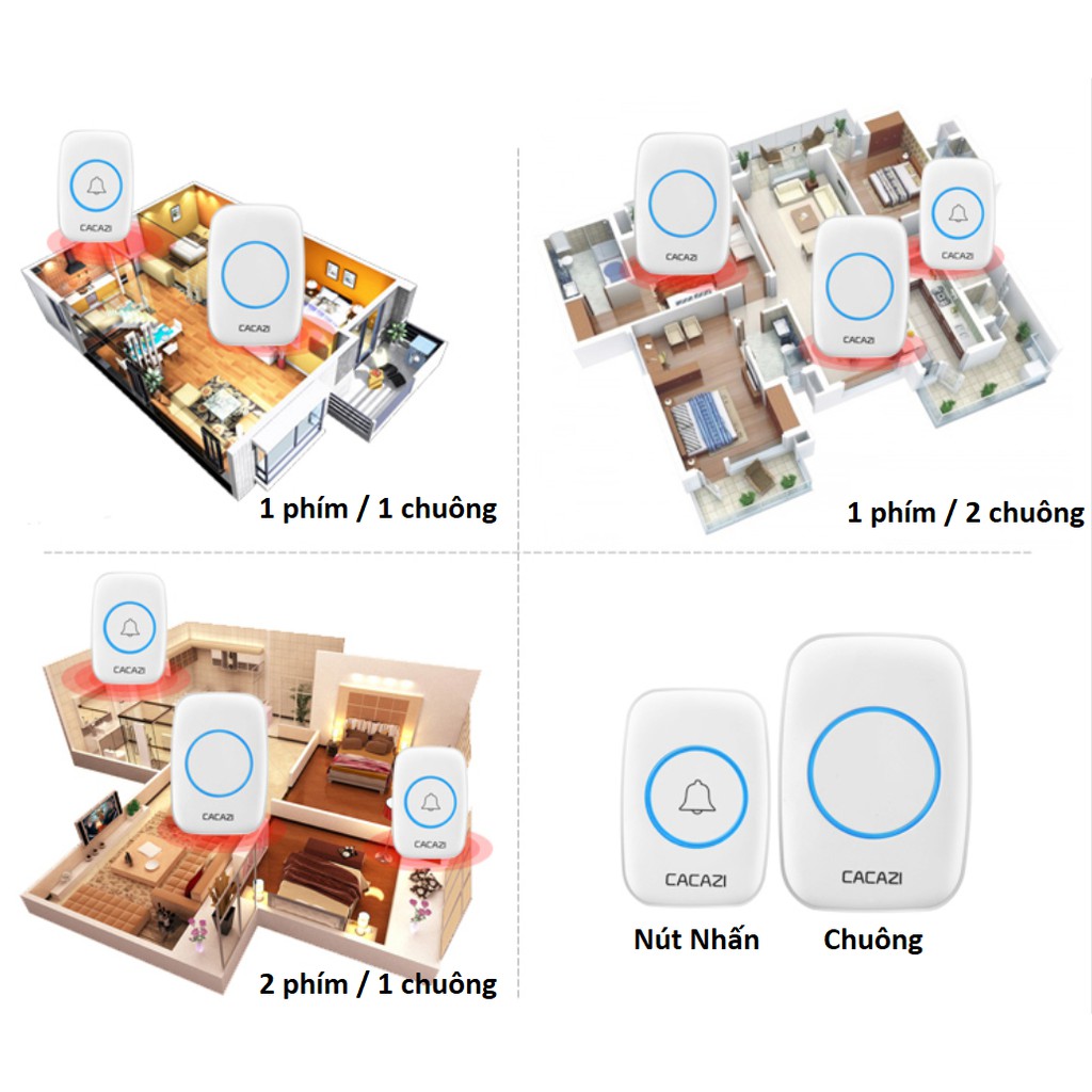 Chuông cửa không dây Cacazi A10, K01 38 kiểu nhạc chuông, bảo hành 1 đổi 1 trong 1 tháng