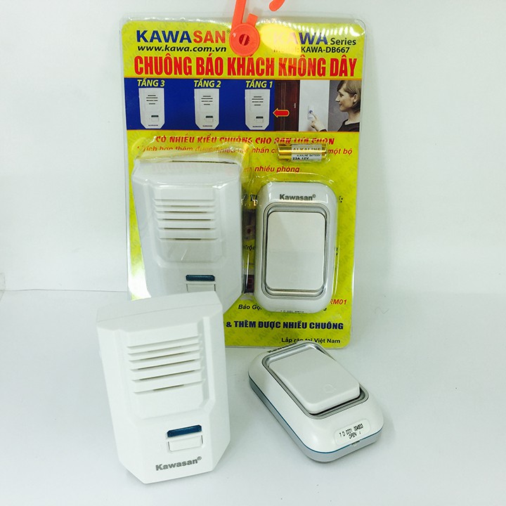 Chuông cửa không dây Kawa DB667 dùng để lắp ngoài trời, có chống nước, có 32 kiểu chuông lựa chọn, thuận tiện cho việc lắp đặt và mang đi nhiều vị trí cần báo động trong gia đình.