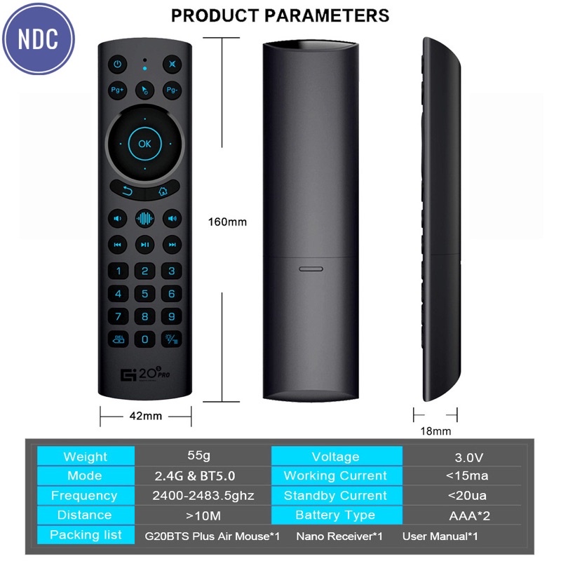 1. Điều khiển G20S Pro BT là phiên bản có cả kết nối bluetooth, kết nối không dây 2.4G và hồng ngoại. Tương thích với hầu hết các thiết bị android tv box và smart tv chạy android tv, có 2 phím học lệnh hồng ngoại được là nút nguồn và nút mute.