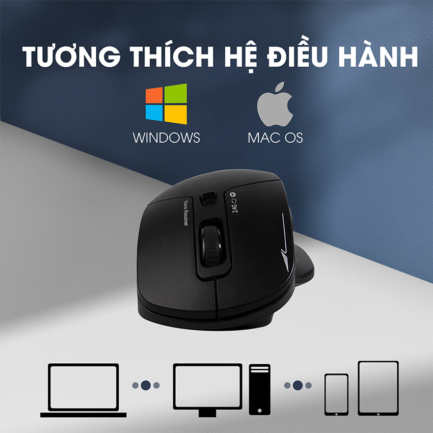 Thiết kế Ergonomic, mang đến sự thoải mái cho người dùng Độ phân giải lên đến 1600 DPI, giúp thao tác chuột nhanh nhạy 3 chế độ kết nối, phù hợp cho nhu cầu sử dụng đa phương tiện 5 nút chức năng giúp thuận tiện hơn khi giao tiếp với máy tính Công nghệ Silent, áp dụng tất cả các nút giúp giảm tiếng ồn Chế độ tiết kiệm pin thông minh, có đèn cảnh báo pin thấp Sử dụng nút nguồn MỞ/TẮT hoàn toàn riêng biệt, dễ sử dụng