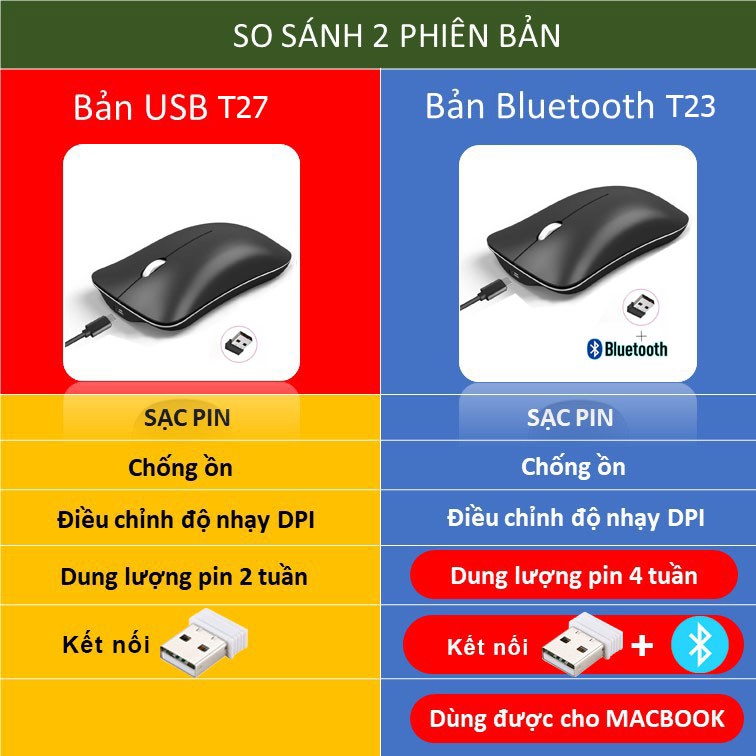 2, Loại 2 trong 1 Bluetooth+USB T23: Sử dụng được cho tất cả các thiết bị Máy Tính, Tivi, PC, MAC, Đặc biệt kết nối được với điện thoại, Ipad, MAC không có cổng USB, ...