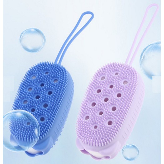 ❆ Bông tắm silicon 2 mặt, 1 mặt tẩy da chết Massage body, 1 mặt tạo bọt, có dây treo vô cùng sạch sẽ❆ Thiết kế gai nhỏ mềm mại giúp làm sạch sâu, tạo nhiều bọt, nhanh khô sau khi sử dụng, không gây ẩm mốc như những bông tắm thông thường.