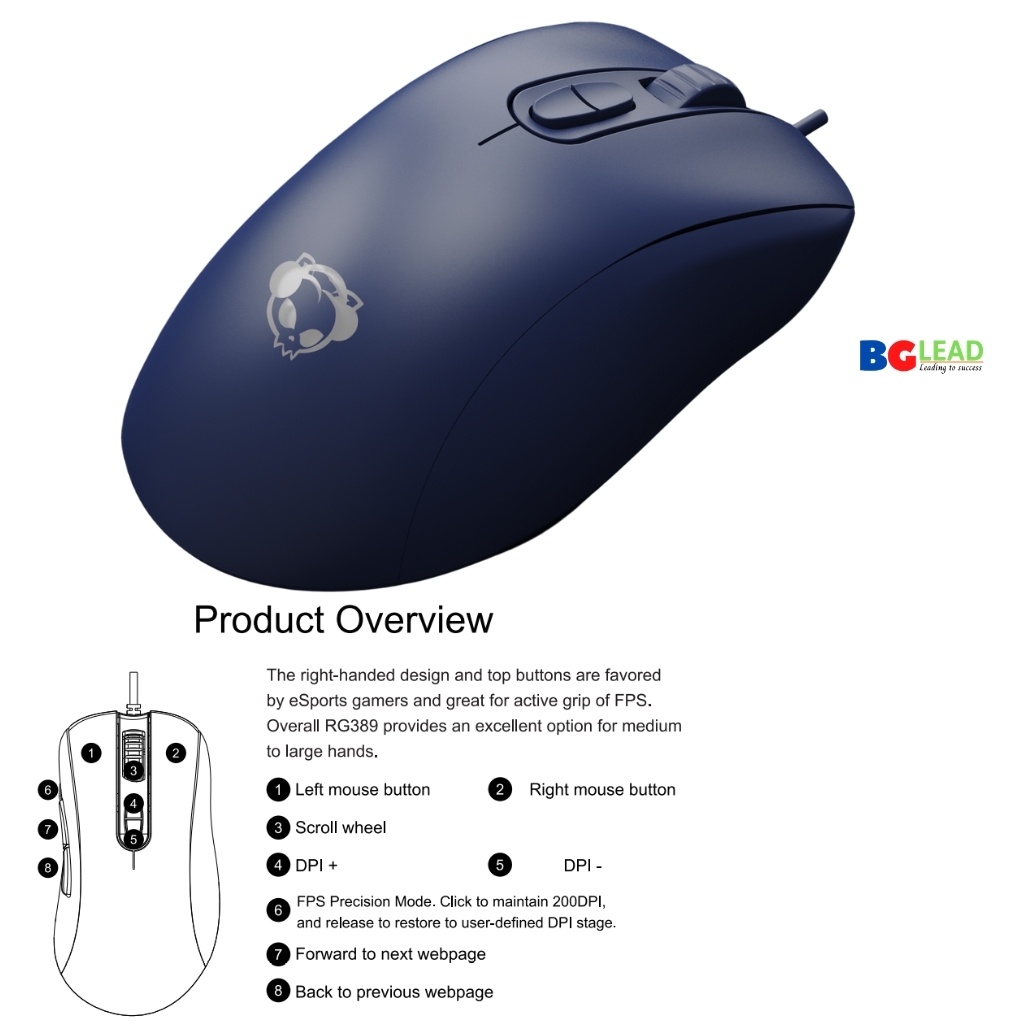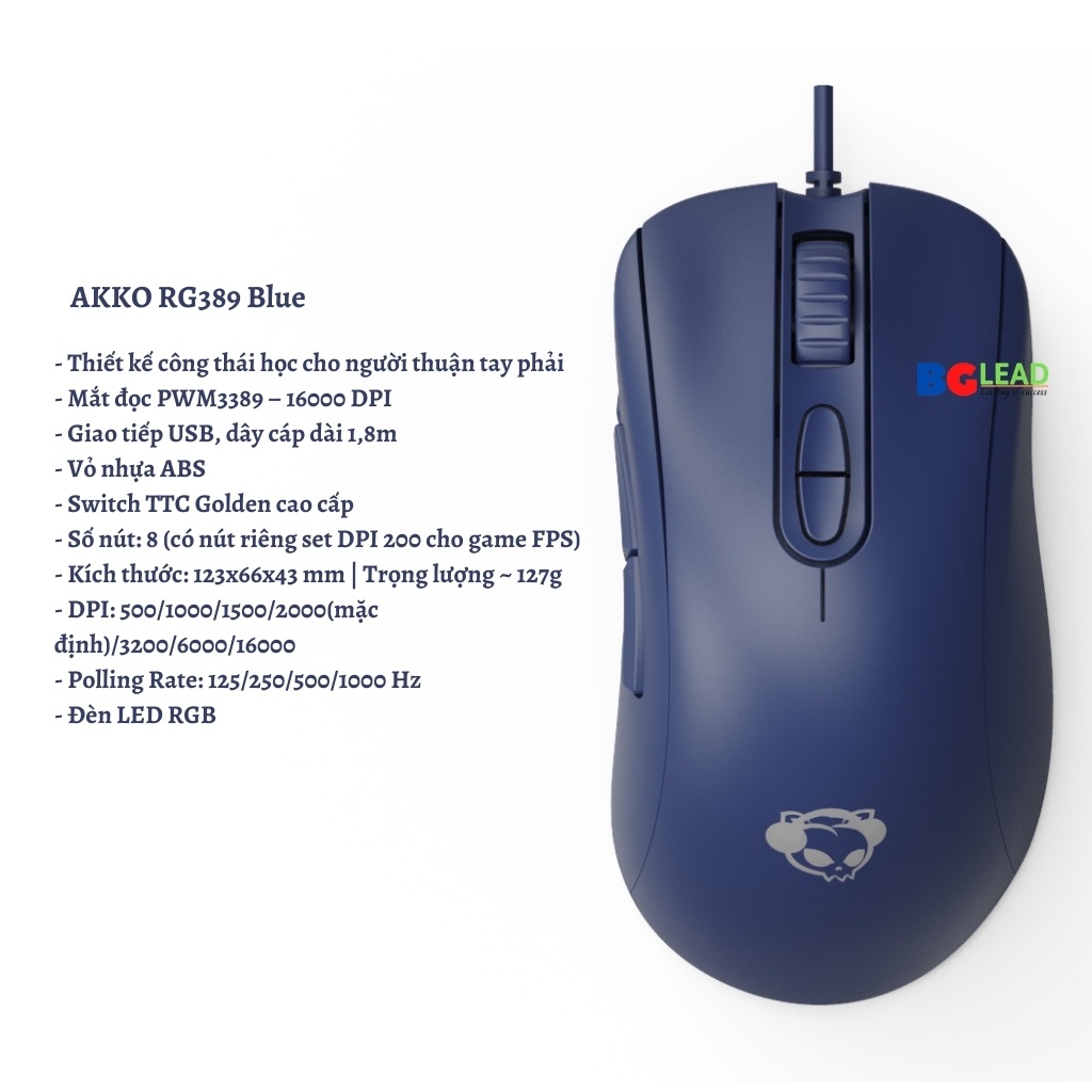 ✪ Thông tin sản phẩm: Chuột chơi game FPS AKKO RG389 Ocean Blue (PMW3389 / 16000 DPI / TTC Golden switch / RGB)