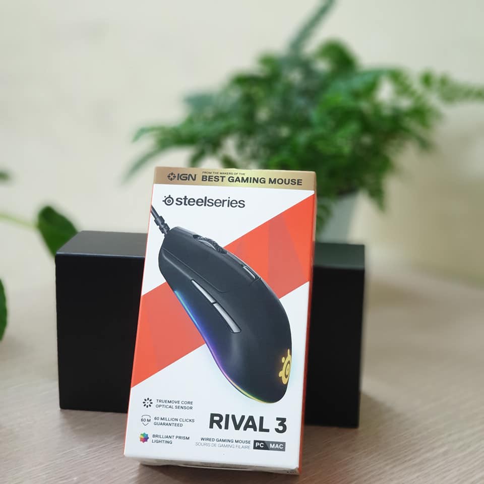 - Trong đó, chuột gaming Rival 3 có trọng lượng 77g, tích hợp đèn RGB, sử dụng switch có độ bền 60 triệu lần nhấn, mắt đọc quang (optical) hiệu năng cao TrueMove Core, và vì được làm từ polymer chất lượng cao nên Rival 3 sẽ rất bền.