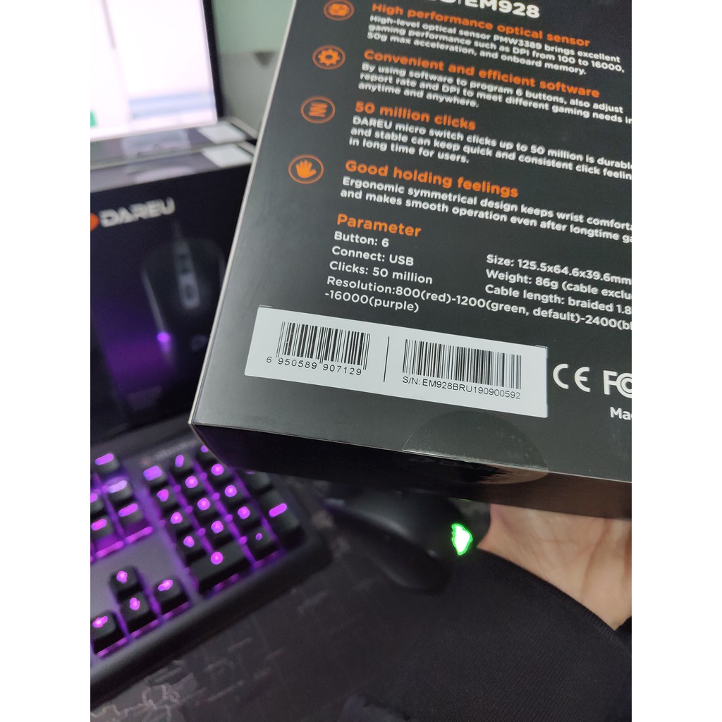 * Mặc dù Hiệu ứng LED không được nổi bật, nhưng Chuột Dareu EM928 Sparta Gaming được trang bị cảm biến PixArt PMW3389 tiên tiến nhất - Top đầu trong bảng xếp hạng của PixArt, với thiết kế đối xứng công thái học giúp cho các cao thủ game đích thực có thể cầm nắm thoải mái các kiểu và đảm bảo được độ chính xác rất cao trong những pha gay cấn.