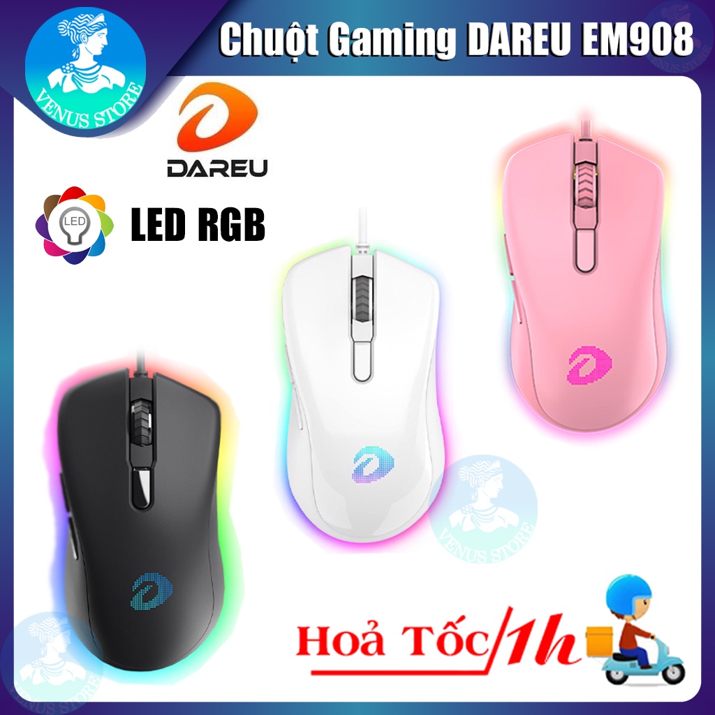 Chuột Gaming DAREU EM908 Led RGB - Chuột Game Có Dây Màu Hồng Màu Trắng Màu Đen Hàng Chính Hãng ***********************💥DareU EM908 RGB là một chú chuột chơi game mới được ra mắt của DareU vào đúng dịp cuối năm này. Như đã biết thì DareU là một hãng chuyên sản xuất các sản phẩm Gaming gear giá rẻ nhưng lại có chất lượng cực kì tốt. Vậy hãy cùng xem chú chuột EM908 RGB có gì đặc biệt.
