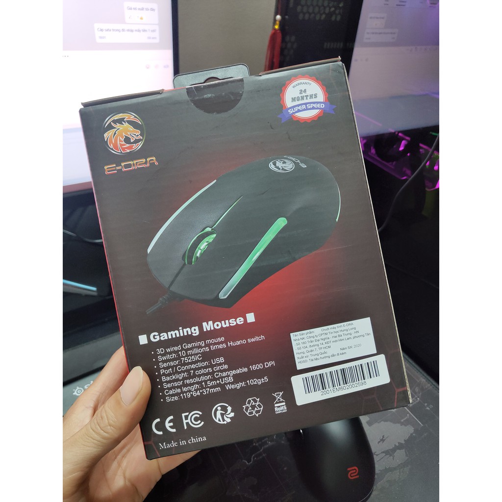 * Thông tin sản phẩm:- Tên sản phẩm: Chuột gaming E-Dra EM602 LED RGB Auto