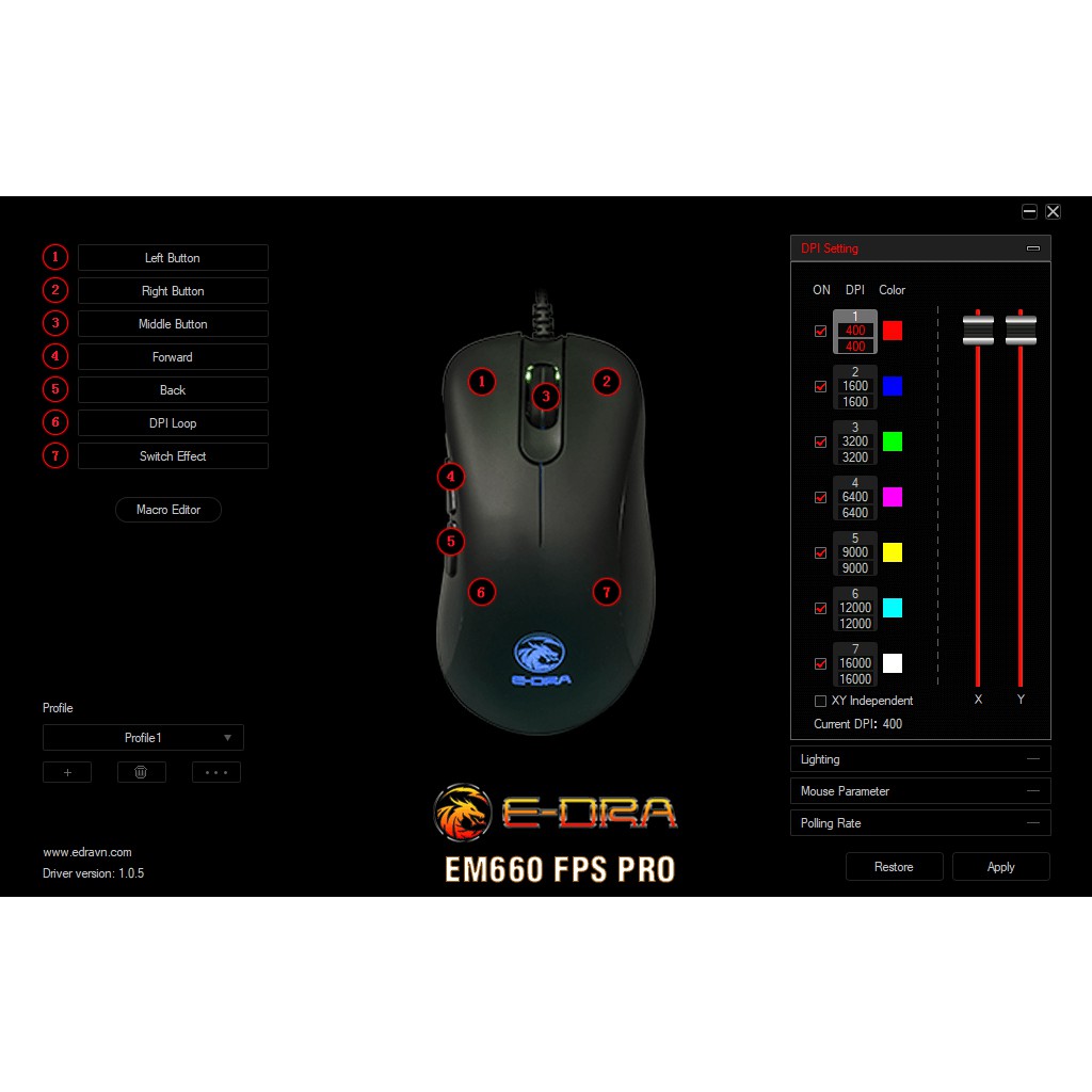 Máy tính & Laptop > Chuột & Bàn Phím > Chuột Máy Tính || Chuột Gaming E-Dra EM660 Pro FPS ( LED RGB, 16000 DPI, Phần mềm tùy chỉnh ) - Bảo hành 24 thángCòn hàng