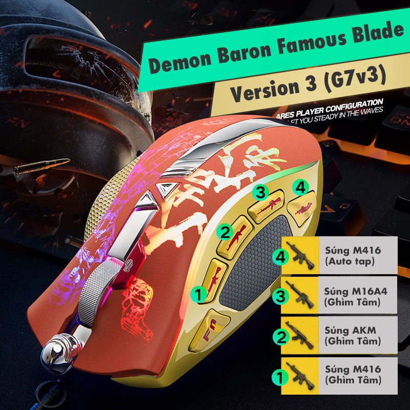 [Mã 154ELSALE2 giảm 7% đơn 300K] Chuột Gaming G7 Demon Baron Phiên Bản Mới | Hỗ trợ ghìm tâm PUBG Mobile, PC
